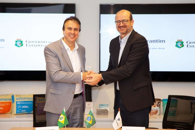 O governador Camilo Santana e o presidente global da Votorantim Cimentos, Marcelo Castelli, anunciaram nesta segunda-feira, 06, em São Paulo, acordo para investimento de R$ 200 milhões na ampliação da fábrica do Pecém, que irá aumentar em 800 mil toneladas/ano a capacidade de moagem de cimento da unidade, atualmente de 200 mil toneladas/ano. Após a conclusão, a fábrica da Votorantim Cimentos no Pecém passará a ter uma capacidade de produção total de 1 milhão de toneladas/ano de cimento. As obras estão previstas para começar no primeiro semestre deste ano.